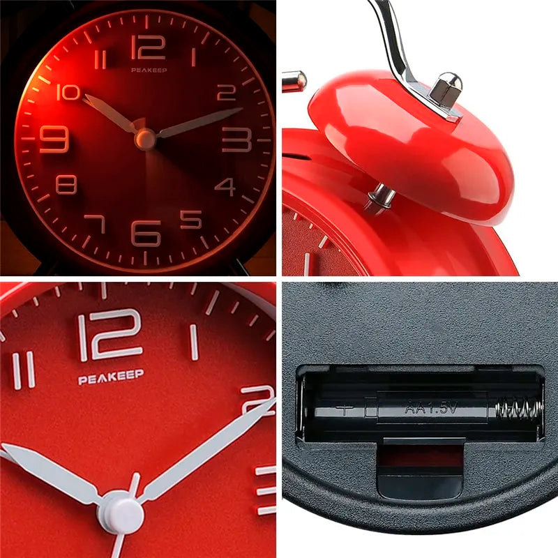 Klíčové výhody a vlastnosti Červeného retro budíku se dvěma zvonky: