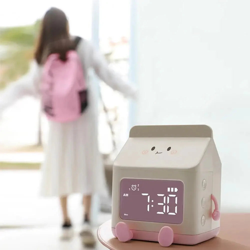 Klíčové vlastnosti našeho roztomilého Dětského budíku ve tvaru krabice mléka: