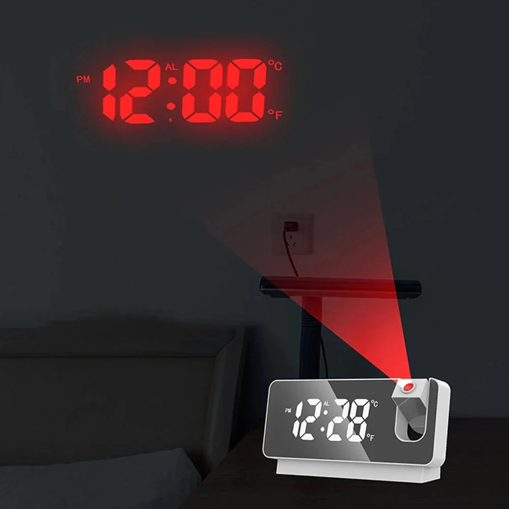 Představte si probuzení ne s drsným zvukem, ale s jemnou projekcí času na váš strop. Náš nový digitální budík není jen obyčejný ukazatel času; je to moderní dominanta vaší ložnice. S elegantním zrcadlovým povrchem a živým, vícebarevným LED displejem přináší dotek stylu do každého pokoje. Zapomeňte na tápání po telefonu ve tmě – rychlý pohled na zeď nebo strop vám ukáže čas, a to díky křišťálově čisté červené projekci. Navíc integrovaný USB port znamená o jeden nabíjecí adaptér méně na vašem nočním stolku. Je navržen pro pohodlí, styl a hladší začátek vašeho dne.