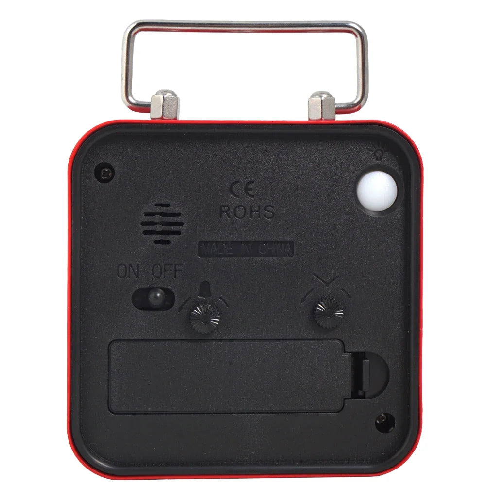Tento Malý čtvercový přenosný budík kombinuje retro šarm s moderní jednoduchostí. Jeho odolné červené pouzdro s oblými hranami je příjemné na pohled i na dotek. Jasně čitelný číselník s černými číslicemi na světlém pozadí zajišťuje, že čas uvidíte i v rychlosti. Díky praktickému kovovému držátku na vrchu ho můžete snadno přenášet z místa na místo nebo ho zavěsit. Je to dokonalý kousek pro ty, kteří ocení funkčnost, spolehlivost a nadčasový design.