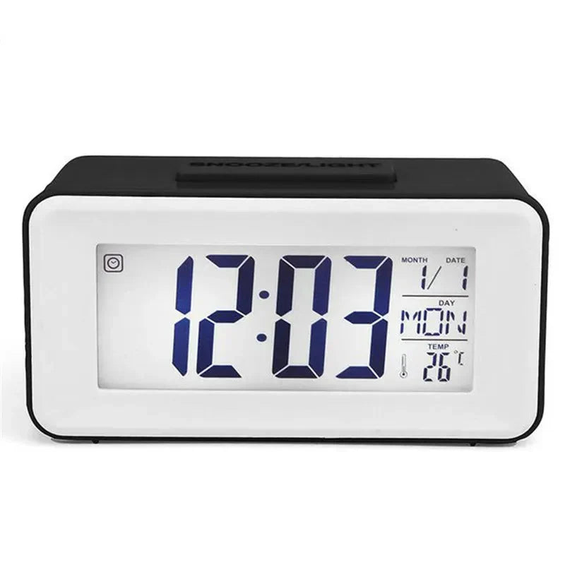 Tento malý digitální budík na baterie byl navržen s ohledem na vaše pohodlí. Jeho velký, podsvícený LCD displej zajišťuje, že uvidíte čas i v naprosté tmě nebo za slunečného dne, bez nutnosti namáhat oči. Jediným stisknutím tlačítka "SNOOZE/LIGHT" získáte okamžité podsvícení a extra pár minut spánku, než se s úsměvem probudíte. Kromě klasického buzení vám náš budík poskytne rychlý přehled o dnešním datu, dni v týdnu a dokonce i o tom, jaká je teplota ve vaší ložnici. Ideální pro ty, kteří chtějí mít vše pod kontrolou hned po probuzení.