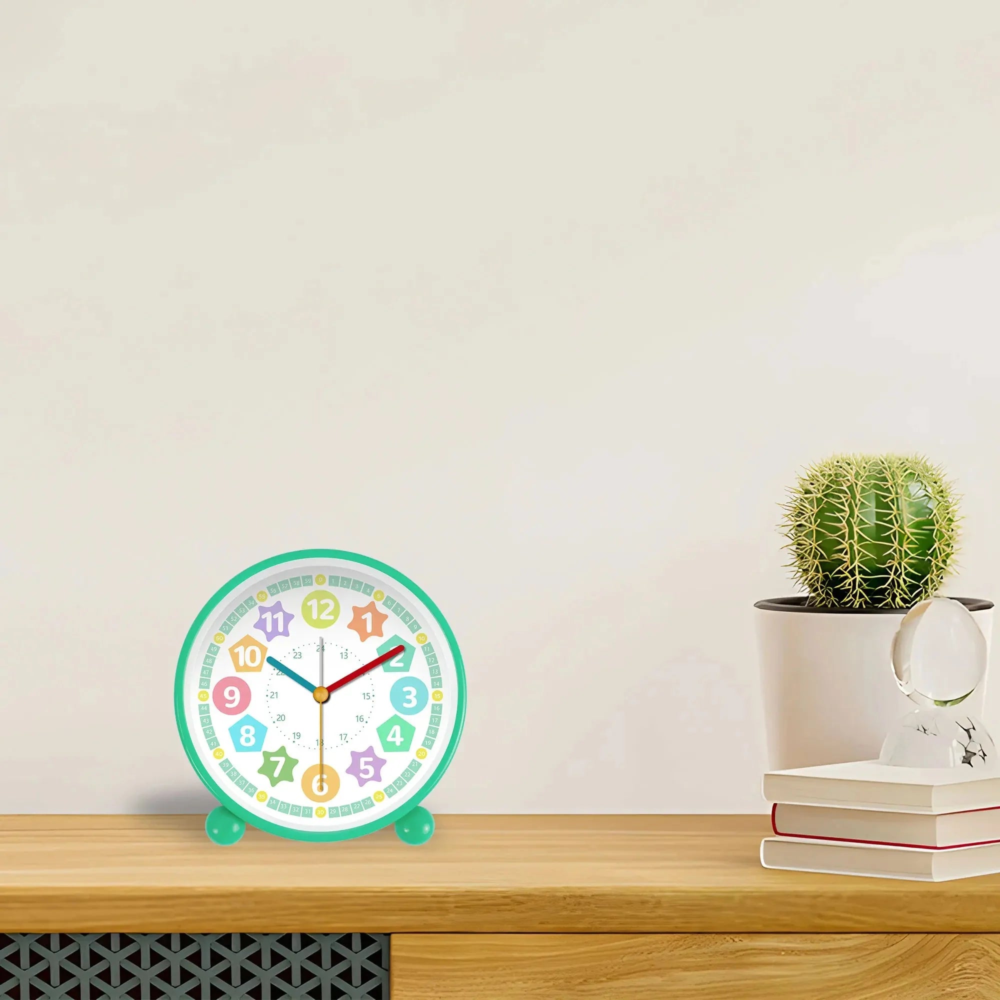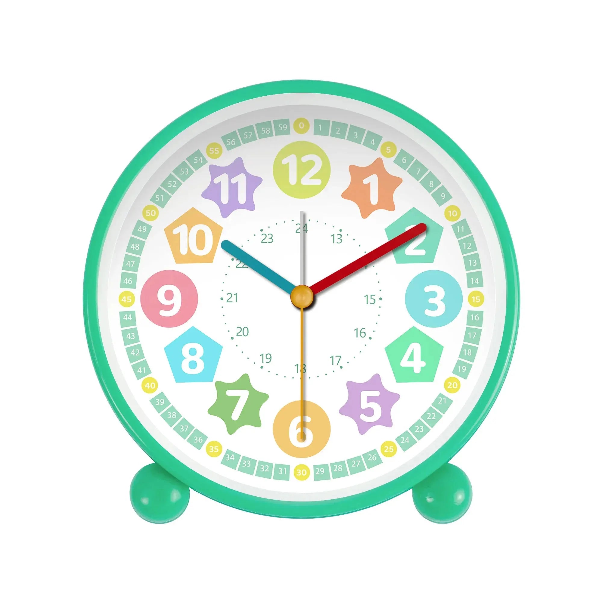 Náš budík není jen obyčejný ukazatel času. Je to kompletní vzdělávací nástroj, který pomáhá rozvíjet kognitivní schopnosti a smysl pro odpovědnost. Díky přehlednému ciferníku s velkými čísly 1-12 v různých tvarech a barvách, doplněnými o vnější kruh s minutami (0-59) a vnitřní kruh s 24hodinovým formátem, se děti rychle naučí nejen kolik je hodin, ale i jak dlouho trvá například do oběda nebo do pohádky. Barevné ručičky – modrá pro hodiny, červená pro minuty a žlutá pro sekundy – jsou jasně odlišitelné, což usnadňuje rozpoznávání a asociaci. Odolná a bezpečná konstrukce zajišťuje, že budík vydrží i v rušném dětském pokoji.