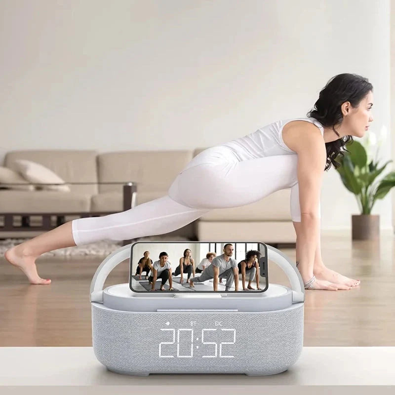 Představte si, jak se probouzíte za jemného zvuku rádia nebo vaší oblíbené melodie, zatímco se místnost pomalu rozjasňuje díky integrované lampě. Během toho se váš smartphone bezdrátově nabíjí, stačí ho položit na horní plochu. Žádné hledání kabelů, žádné další adaptéry. Tento radiobudík s lampou a bezdrátovou nabíječkou se stane nepostradatelným společníkem ve vaší ložnici. Jeho minimalistický design s dřevěnými prvky a látkovým povrchem reproduktoru dodává interiéru útulnou a moderní atmosféru, která se hodí do každého stylu bydlení. Ovládání je intuitivní a digitální displej času je jasně čitelný, ale zároveň diskrétní.