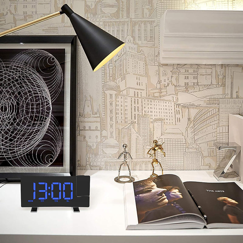 - Jasná modrá projekce času: Snadno nastavitelný projektor promítá čas na stěnu nebo strop, což zajišťuje skvělou viditelnost bez nutnosti vstávat nebo se otáčet.