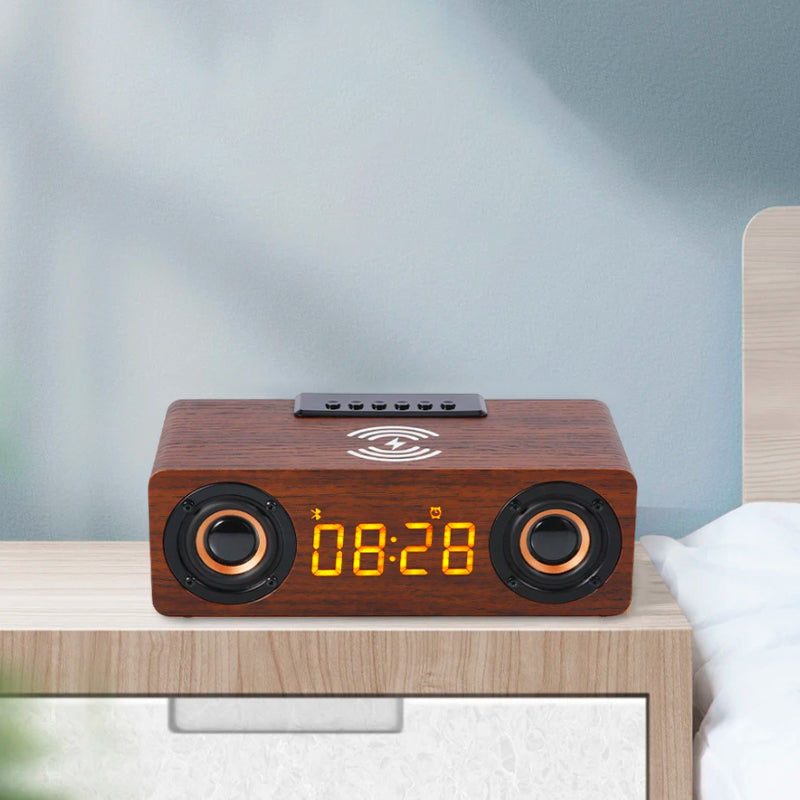Náš retro chytrý budík s Bluetooth reproduktory je víc než jen ukazatel času. Nabízí vám spojení nostalgického designu s nejnovějšími technologickými vymoženostmi. Dřevěné provedení dodává budíku příjemný, teplý vzhled, který se snadno začlení do vašeho domova. S funkcí bezdrátového nabíjení se už nikdy nebudete muset obávat vybitého telefonu po ránu. Jednoduše položíte svůj telefon na horní část budíku a on se postará o zbytek. Navíc, výkonné Bluetooth reproduktory zajistí, že si užijete krystalicky čistý zvuk vaší oblíbené hudby nebo podcastů, kdykoli budete chtít. Užijte si dokonalou kombinaci krásy a funkčnosti.