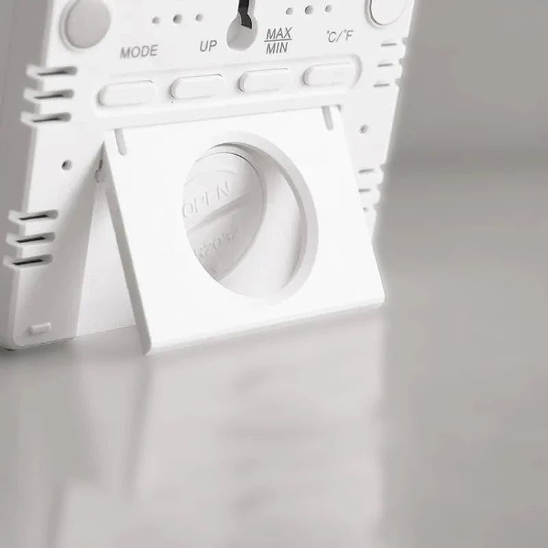 Naše pozornost k detailům se odráží v naprosté tichosti tohoto budíku. Žádné tikání, žádné rušivé zvuky – jen čistá digitální přesnost, která vás ráno jemně probudí. Jeho minimalistický bílý design se hodí do každého interiéru a na každou noční stolek, aniž by zabíral mnoho místa. Kromě spolehlivého budíku získáte i osobního asistenta pro kontrolu vnitřního klimatu. Sledování teploty (například 28.5 °C) a vlhkosti (například 53 %) je klíčové pro vaše pohodlí a zdraví, a tento Tichý digitální budík na cesty vám to umožní na první pohled, s lehkostí a stylem.
