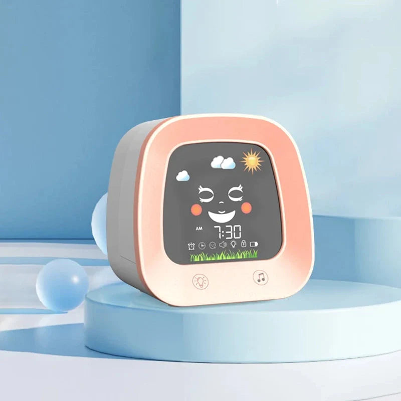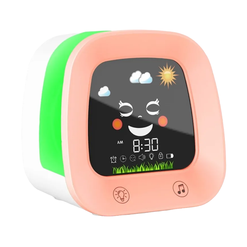 Náš Učící budík pro holky den noc funguje jako vizuální signál, který děti přirozeně učí rozpoznávat den a noc. Zapomeňte na složitá vysvětlení. Místo toho budík na svém displeji zobrazuje roztomilou tvářičku – večer se tvářička usměje, zavře oči a ukáže měsíc, což signalizuje, že je čas jít spát. Ráno, když je správný čas vstát (nastavíte si sami!), se tvářička probudí, otevře oči, a objeví se slunce, čímž dceři jemně oznámí, že už může vstát a začít si hrát. Tento jednoduchý, ale efektivní systém pomáhá dětem budovat si zdravé spánkové návyky, aniž by uměly číst hodiny. Přidejte k tomu možnost jemného probuzení s příjemnou melodií a lehkým světlem, a vaše holčička bude milovat vstávání.