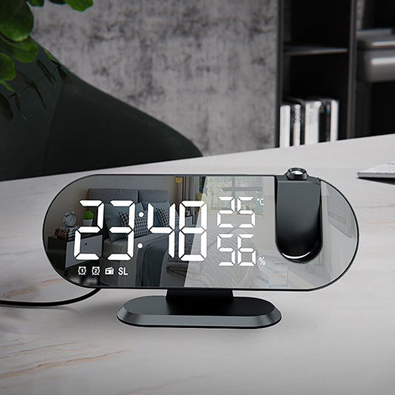 Probuďte se stylově s naším Zrcadlovým radiobudíkem s projekcí na strop